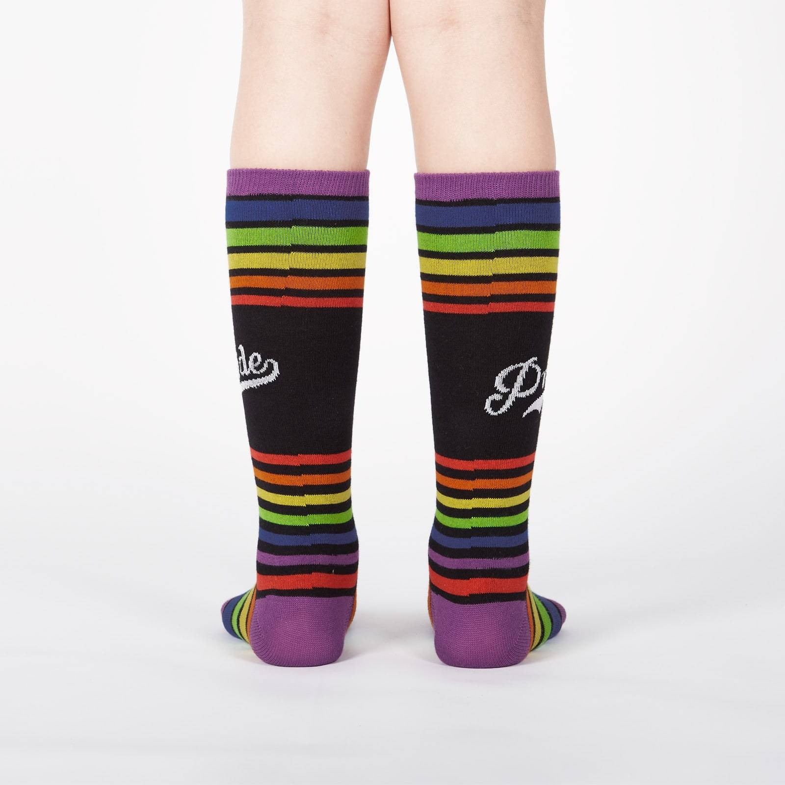 At Sock It to Me, we stand with our LGBTQIA team members, family, and friends and we want everyone to know it. These new Team Pride Junior Knee Socks are the perfect pair for your kid to wear to Pride this year—and they’re much more than that, too. Pride happens once per year, but personal pride is an everyday thing that goes everywhere with you. These Junior socks let you show people that you support the ongoing fight for equality. Whether you’re a member of the community or an ally, Team Pride Junior Knee Socks deliver an important and necessary message.